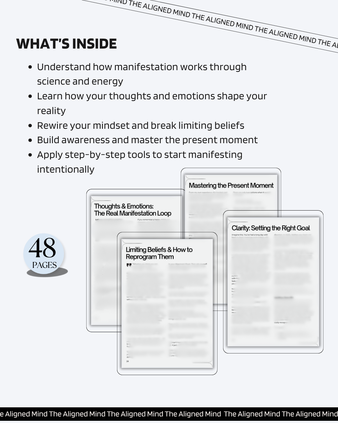 A modern guide to transforming your inner world and aligning your energy with the life you’re meant to create. This guide is built from my personal experience with the exact tools, frameworks, and reflections that helped me reprogram my mind, release limiting beliefs, and create the life I once only visualized.
